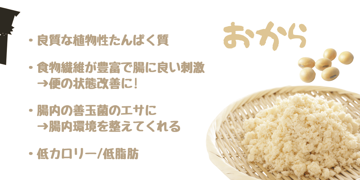 おからの不溶性食物繊維が腸を刺激し、便のかさを増やして便秘解消を促してくれます