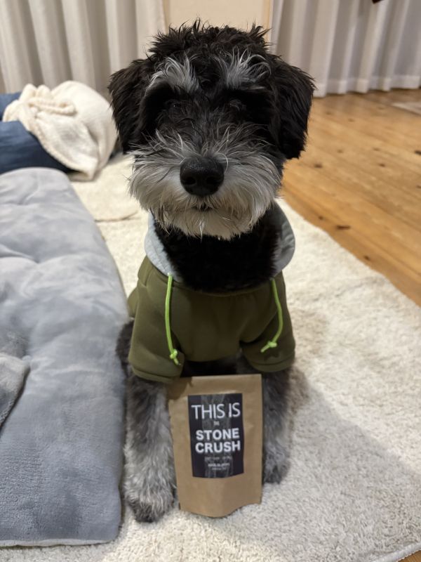 シュナウザー・テリアがよく噛んで美味しく食べれるサイズを研究し、ついに完成しました。